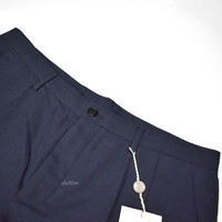 Over 4000 grails sold, buy with confidence MSRP: $685 - New / unworn - Navy blue fine 100% wool fabric - Double pleats, button fly, slit pockets, cuffed hem - Original tags still attached - Slim fit - Size 52 EU / 36 US Measurements: Waist (flat): 18.25" Inseam: 31.5" Rise: 10.5" Leg Opening: 7.25" Guaranteed 100% authentic and genuine. All photos were shot by me and show the exact item you will receive.
