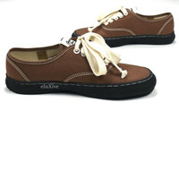 Over 4000 transactions completed, buy with confidence MSRP: $438 - New / unworn - Made of natural materials - Brown cotton canvas upper, tan canvas lining - Classic 'Vans' inspired design - Logo labels on side, tongue and heel - Thick tan woven laces - Rubber outsole with hand-distressed finish - Comes with original box - Size: 8 US/ 41 EU Measurements: Insole: 11" Outsole: 11.75" Forefoot Width: 4" Heel Width: 2.875" Guaranteed 100% authentic and genuine All photos were shot in-house. They are not stock photos