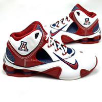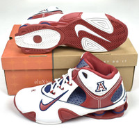 Over 4000 grails sold, buy with confidence - Brand new / unworn - Deadstock 2006 player exclusive sneaker made for the Arizona Wildcats basketball team. Never released to the public. - White leather upper with dark red patent trim - Navy blue accents - Nike Shox technology in heel - Arizona 'A' logo on outer sides - Wildcat mascot print on inner sides - McKale Center embroidered on back - EST. 1905 embroidered on inner tongue - 'Zona Wildcats / 101 Years / 4 Final Fours / 1 National Title' printed on insoles - Nke Shox logo on toe - Comes in original box, original lace bag still attached - Note: due to age, not recommended for daily wear. - Size 11 US SKU: 314097-161 Guaranteed 100% authentic and genuine. All photos were shot by me. They are not stock photos.