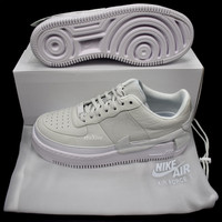 Over 4000 grails sold, buy with confidence - New / unworn - Deadstock 2018 release - White premium leather upper - White Nike swoosh offset below perforated swoosh - Nike Air Force 1 tag near heel and offset heel tag - Textured tongue with no tongue tag - White foam midsole and rubber outsole - Comes in original box - Size 9.5 women's / 8 men's Guaranteed 100% authentic and genuine. All photos were shot by me. They are not stock photos.