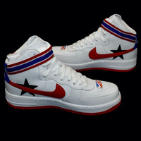 Over 4000 grails sold, buy with confidence - New / unworn - Deadstock 2017 release - Designed by Riccardo Tisci (from Givenchy) - White premium leather upper and lining - Red leather swoosh logos on sides - Black leather star details - NBA-inspired Nike / RT logo details throughout - Triangle-shaped perforations at toe box - Removable red, white and blue ankle strap - Solid white midsole, red rubber outsole 'AIR RT' logo on midsole - Comes in original box and wrapping - Size 10 US Style: AQ3366-100 Guaranteed 100% authentic and genuine. All photos were shot in-house. They are not stock photos.