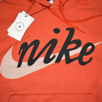 Over 4000 grails sold, buy with confidence - New / unworn - Very limited 2021 release - Reddish orange double-layered cotton fleece knit - Slightly distressed finish - Printed Nike swoosh logo with embroidered 'nike' script - Drawstring hood, kangaroo pocket, long ribbed cuffs - 'Just Do It' print on left sleeve - Boxy, oversized fit - Comes in original package with original tags still attached - Note: color is lighter in person than in photos - Size: Medium Measurements: Pit to pit: 27.25" Shoulder to shoulder: 26" Top of collar to bottom hem: 26.5" Shoulder seam to sleeve end: 22.5" Guaranteed 100% authentic and genuine. All photos were shot in-house. They are not stock photos.