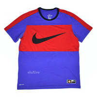 Over 3800 grail sold, buy with confidence - Pre-owned, in good overall condition. Some fading under arms - Purple and red paneled 100% cotton knit - Large black swoosh logo in center - Nike Basketball logo at hem - Crewneck and short sleeves - Classic fit - Size L Measurements: Pit to pit: 22" Shoulder to shoulder: 18" Top of collar to bottom hem: 28.25" Shoulder seam to sleeve end: 8.5" Guaranteed 100% authentic and genuine. All photos were shot by me. They are not stock photos.