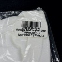 Over 3000 transactions completed, buy with confidence - New / unworn - Deadstock F/W 2017 release - One of the rarest Noah tees, all proceeds upon release were donated to Hurricane Harvey relief efforts - Solid white 100% cotton tube knit - Red logo with plane/care package print on front - "Hurrican Relief 2017 Harvey IRMA Climate Change Is Real" print on back - Crewneck & short sleeves - Classic fit - Sealed in original bag - Size- Large Guaranteed 100% authentic and genuine. First 2 photos are from Noah site. The shirt you receive will be sealed in the original bag.