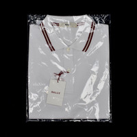Over 3500 grails sold, buy with confidence MSRP: $310 - New / unused - White 100% cotton knit - Tonal Bally logo embroidered on left chest - Red and beige web stripe trim along collar and sleeves - Polo collar, two button placket & short sleeves - Classic fit - Comes in original packaging with tags still attached - Size 52 EU (US Large) Measurements Pit to pit: 22" Shoulder to shoulder: 16.5" Top of collar to bottom hem: 28.75" Shoulder seam to sleeve end: 8.75" Guaranteed 100% authentic and genuine All photos were shot by me. They are not stock photos.
