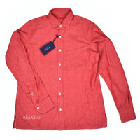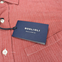 Boglioli Red Herringbone Woven Cotton Button Down Shirt NWT