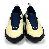 Over 4000 grails sold, buy with confidence - New / unworn - Deadstock 2022 release, retro of the rare Y2K Oakley Flesh sneaker - Navy blue sock-fit upper with sand suede overlays - Oakley logo on front and back - Futuristic O-logo outsole - Comes with original box - Size 10.5 (fits large) Measurements: Insole: 11.5" Outsole: 12.75" Forefoot width: 5" Heel width: 4" Guaranteed 100% authentic and genuine All photos were shot by me. They are not stock photos.