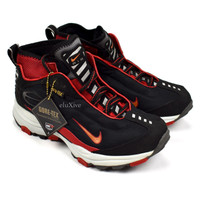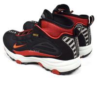 Over 4000 grails sold, buy with confidence - New / unworn - Deadstock 2000 release - Black nubuck and mesh upper with Gore-Tex technology - Black plastic side moldings, silver reflective details - Orange and red Nike swoosh logos on sides - Nike Air logos on tongue and back tab - Solid light gray midsole with hidden Zoom Air technology - Elastic 'sock' fit lining - Black and red spiked rubber outsole - Comes with original box and Gore-Tex hang tag - Note: May have slight discoloration / oxidation due to age - Men's size 10.5 US Guaranteed 100% authentic and genuine. All photos were shot by me. They are not stock photos.