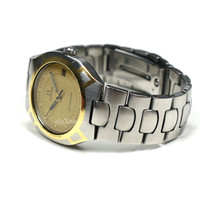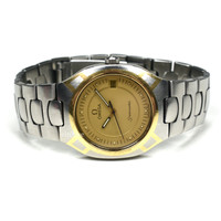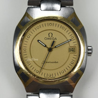 Over 4000 grails sold, buy with confidence MSRP: $4,250 (for comparable new model) - Pre-owned, in very good condition with light scratching throughout - All-original vintage item from the late 1980s - Unique, sleek minimal design - Stainless steel case with inlayed solid 18K gold bezel - Champagne dial with date window - Stainless steel band with 18K gold clasp logo - Quartz movement, keeps perfect time - Includes original Omega service case - Swiss Made - Note: Due to age, this watch carries no warranty and water resistance is not guaranteed. Measurements Case width: 31 mm Lug to lug: 36 mm Fitment: up to 7.5" wrist Guaranteed 100% authentic and genuine. All photos were professionally shot by us and show the exact item for sale.