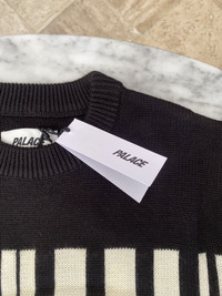 Over 3800 grails sold, buy with confidence - New / unworn - Deadstock S/S 2021 release - Thick black and cream white wool blend knit - Barcode pattern with Palace numbers logo - Crewneck, long sleeves, ribbed cuffs - Classic fit - Comes in original bag with tags still attached - Size Large Measurements: Pit to pit: 23" shoulder to shoulder: 17.25" Top of collar to bottom hem: 29" Shoulder seam to sleeve end: 26.25" Guaranteed 100% authentic and genuine All photos were shot by me. They are not stock photos.