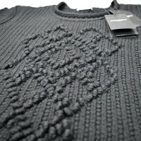 Over 4000 grails sold, buy with confidence MSRP: $2,690 - New / unworn - Thick knit black 100% wool - Intricate, raised geometric pattern on front, back and sleeves - Crewneck, banded cuffs, fringed hem - Slim, cropped fit - Made in Italy - Size Large Measurements: Pit to pit: 21" Shoulder to shoulder: 17" Top of collar to bottom hem: 25.5" Shoulder seam to sleeve end: 25.5" Guaranteed 100% authentic and genuine. All photos were shot by me. They are not stock photos.