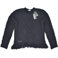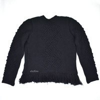 $2.7k Saint Laurent RUNWAY Black Heavy Wool Fringe Sweater