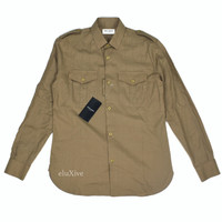 Over 4000 grails sold, buy with confidence MSRP: $950 - New / unworn - Fine beige 100% cotton twill fabric - Military style design with shoulder epaulettes - Button front, flap pockets, side gussets - Original tags and extra buttons still attached - Slim fit - Made in Italy - Size 38 EU / 15 US (Small) Measurements: Pit to pit: 20" Shoulder to shoulder: 17" Top of collar to bottom hem: 30" Shoulder seam to sleeve end: 24.5" Guaranteed 100% authentic and genuine. All photos were professionally shot by us and show the exact item for sale.