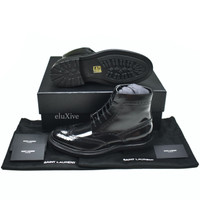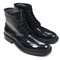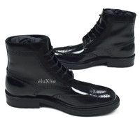 Saint Laurent Black Patent Leather Brogue Army Boots