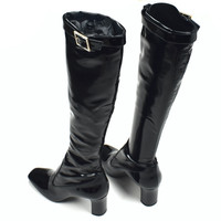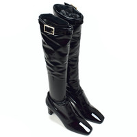 Over 4000 grails sold, buy with confidence MSRP: $1,590 - Brand new / unworn - Black patent calf leather lower - Black stretch-fit upper with patent leather look - Black patent leather straps with crystal inlayed buckles - Square toe, block heel - Calf leather insoles and lining - Black leather outsole - Comes with original box, dust bags and booklets - Made in Italy - Size 36.5 EU / 6.5 US Measurements: Outsole: 8.75" Heel width: 1.5" Forefoot width: 3" Heel height: 2.75" Total Height: 19" Guaranteed 100% authentic and genuine All photos show actual item