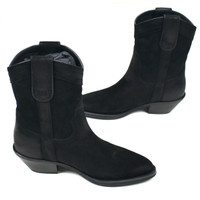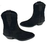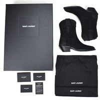 Over 4000 grails sold, buy with confidence MSRP: $1,195 - Brand new / unworn - Classic mid top 'cowboy' style - Thick black buffed suede upper - Western stitching pattern - Leather lining and outsole - Comes with original box, dust bags and papers - Made in Italy - Size 36 EU / 6 US Women's Measurements: Insole: 9.25" Outsole: 9.25" Heel width: 1.875" Forefoot width: 3.625" Heel: 1.75" Total height: 9.25" Guaranteed 100% authentic and genuine. All photos were shot by me. They are not stock photos.