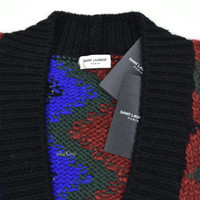 Over 4000 grails sold, buy with confidence MSRP: $1,550 - New / unworn - Thick, shaggy, loose knit wool blend knit - Colorful allover zig zag pattern with silver sequins - Saint Laurent logo engraved buttons, slit pockets - Oversized fit - Original tags still attached - Made in Italy - Size Large Measurements: Pit to pit: 23" Shoulder to shoulder: 20" Top of collar to bottom hem: 30.5" Shoulder seam to sleeve end: 26.5" Guaranteed 100% authentic and genuine All photos were shot by me. They are not stock photos.
