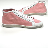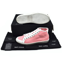 Over 4000 grails sold, buy with confidence MSRP: $625 - Brand new / unworn - Pink canvas and white calfskin upper - Saint Laurent logos on sides and back tab - Unstructured, retro mid-top design - Hand-distressed beige rubber cup sole and toe cap - Comes with original box, dust bags, and tags - Made in Italy - Size 43 EU / 10 US Measurements Insole: 11" Outsole: 11.75" Heel width: 3" Forefoot width: 4" Guaranteed 100% authentic and genuine. All photos were shot by me. They are not stock photos.