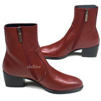 Over 4000 grails sold, buy with confidence MSRP: $1,295 - Brand new / unworn - Fine red calf leather upper - Full length zipper on side - Calf leather insoles and lining - Black leather outsole, square heel - Comes with original box, dust bags and booklets - Made in Italy - Size 36.5 EU / 6.5 US Measurements: Insole: 9.25" Outsole: 9.75" Heel width: 2" Forefoot width: 3.5" Heel height: 2" Total Height: 7.75" Guaranteed 100% authentic and genuine All photos were shot by me. They are not stock photos.