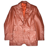 Over 4000 grails sold, buy with confidence - Pre-owned, in excellent condition with no visible flaws - Original 1970s vintage item - Cognac brown genuine leather upper - YSL logo woven lining - Wide notch lapel, patch pockets, 2 button front, double vent - Classic fit - Size: Large Measurements: Pit to pit: 21.75" Shoulders: 19" Shoulder seam to sleeve end: 34" Top of Collar to Bottom Hem: 25" Guaranteed 100% authentic and genuine. All photos were shot by me. They are not stock photos.