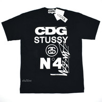 CDG Stussy No.4 Logo T-Shirt Black DS