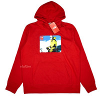 Over 3000 grails sold, buy with confidence - New / unworn - Deadstock F/W 2018 release - Red cotton blend knit - Red Supreme box logo and North Face logo on front - Large mountain graphic on front - Drawstring hood, front kangaroo pocket, ribbed cuffs - Classic fit - Comes in original bag with tags still attached - Size Large Measurements: Pit to pit: 23.5" Shoulder to shoulder: 18.5" Top of collar to bottom hem: 28" Shoulder seam to sleeve end: 27" Guaranteed 100% authentic and genuine. All photos were shot in-house. They are not stock photos.