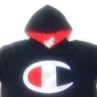 Over 4000 grails sold, buy with confidence - New / unworn - Deadstock S/S 2017 release - Navy blue heavy cotton blend fleece with red trim - Red, white & blue satin Champion logo embroidery on front - Embroidered Supreme & Champion logos on left sleeve - Drawstring hood, front kangaroo pocket, ribbed cuffs - Classic fit - Size Large Measurements: Pit to pit: 25" Shoulder to shoulder: 20.5" Top of collar to bottom hem: 28" Shoulder seam to sleeve end: 25" Guaranteed 100% authentic and genuine. All photos were shot in-house. They are not stock photos.