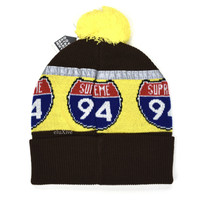 Supreme Interstate 94 Logo Beanie Brown Yellow DS