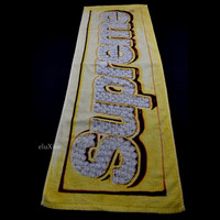 Over 4000 grails sold, buy with confidence - Pre-owned, excellent condition. Used for display only but does have a few little marks. - Very rare S/S 2013 release - Made of white cotton terry cloth - Giant printed 3D effect Supreme 'bling' box logo - Measures 45" x 15.75" Guaranteed 100% authentic and genuine. All photos were shot by me. They are not stock photos.