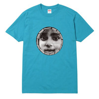 Over 4000 grails sold, buy with confidence - New / unworn - Deadstock S/S 2017 release - Teal blue 100% cotton jersey knit - Grayscale photo print on front - Supreme logo print border - Crewneck, short sleeves, seamless sides - Classic fit - Sealed in original package - Made in USA - Size medium Guaranteed 100% authentic and genuine. First photo is from the Supreme website. All the other photos were shot in-house and show the exact, sealed in bag shirt you will receive.