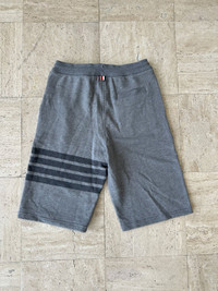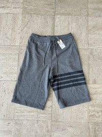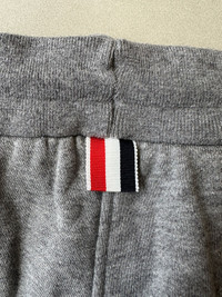 Over 4000 grails sold, buy with confidence MSRP: $750 - New / unworn - Dark heather gray 100% cotton loopback knit - Signature stripe print on left leg - Drawstring waist with tricolor striped metal lace tips - Signature navy, red, and white grosgrain loop on back - 2 side pockets and 1 back pocket - Original tags still attached - Relaxed, long fit - Made in Japan - Size 3 (US Large) Measurements Waist (flat): 14.5" Inseam: 12" Rise: 14.25" Leg opening: 10.75" Guaranteed 100% authentic and genuine. All photos show actual item