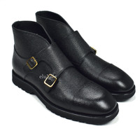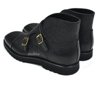 Tom Ford Black Pebbled Calf Leather Monk Strap Boots
