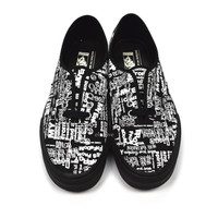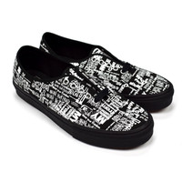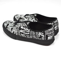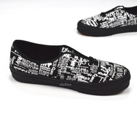 Over 4000 grails sold, buy with confidence - New / unworn - Deadstock 2018 Japanese release - Black cotton canvas upper - Various messages printed in white allover upper - Black rubber foxing, gum waffle sole - Comes with original box and tags - Size 9.5 US Guaranteed 100% authentic and genuine. All photos were shot by me and show the exact item for sale.