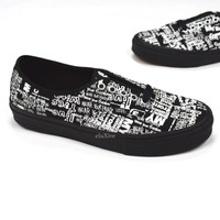 Over 3800 grails sold, buy with confidence - New / unworn - Deadstock 2018 Japanese release - Black cotton canvas upper - Various messages printed in white allover upper - Black rubber foxing, gum waffle sole - Comes with original box and tags - Size 10 US Guaranteed 100% authentic and genuine. All photos were shot by me and show the exact item for sale.