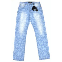Versace Allover Logo Print Light Wash Denim Jeans