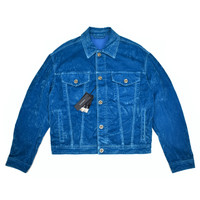 Over 4000 grails sold, buy with confidence MSRP: $2,195 - Brand new / unworn - Mainline runway collection - Azure blue cotton velvet with wrinkled finish - Classic trucker jacket cut with 4 front pockets and point collar - Large gold tone metal & black enamel Versace Medusa logo buttons - Relaxed fit - Original tags still attached - Made in Italy - Size 50 EU (US Medium) Measurements Pit to pit: 24.5" Shoulders: 22.25" Shoulder seam to sleeve end: 26.5" Top of Collar to Bottom Hem: 28" Guaranteed 100% authentic and genuine All photos show actual item.