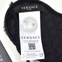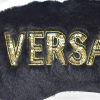 Over 4500 transactions completed, buy with confidence MSRP: $175 - Brand new / unworn - Black faux fur plush with gold sequin VERSACE logo - Quilted backing, adjustable strap - Made in Italy - Original tag attached Guaranteed 100% authentic and genuine. All photos show actual item.