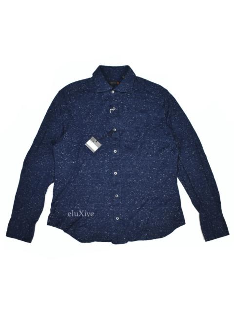 Corneliani ID Navy Speckled Pique Knit Button Down Shirt