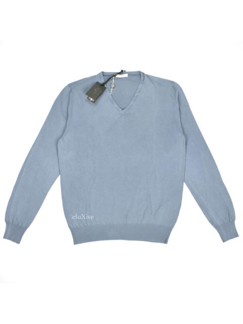 Boglioli Light Blue Fine Cotton V-Neck Sweater NWT