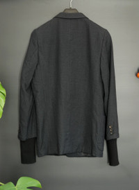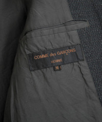 Comme des Garcons Homme jacket/blazer with extended sleeves (rib knitted cuffs). Fully lined. Notch lapel. From autumn/winter 1999. Size: M Measurements (approximate): Shoulder width - 40,5 cm Armpit to armpit - 52,5 cm Arm length - 59,5 cm + 15 cm Length from neck to hem - 73 cm Material: 100% Wool Lining: 100% Cupra Condition: Some wear and tear on the inside. The right rib knited cuff has some repairs.