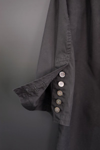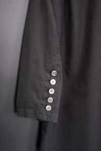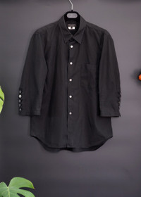 Comme des Garcons black shirt with 3/4 sleeves One chest pocket. Buttons on sleeves can be unbuttoned. From the S/S 2012 collection Size: S Measurements (approximate): Shoulder width - 45 cm Armpit to armpit - 57 cm Arm length - 45 cm Length from neck to hem - 72 cm Material: 100% Cotton Used. Some fading on the inside of the collar.