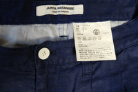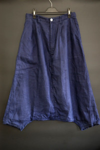 Junya Watanabe cropped drop crotch pants in blue. 2 side + 2 back pockets. AD2010 Size: M Measurements (approximate): Waist - 40 cm Length (outside leg) - 87 cm Leg opening - 17 cm Material: 100% Linen Fully lined with thin fabric: 100% Cotton Condition: Only used a few times.
