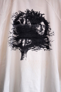 Raf Simons sleeveless oversized hoodie Size: 48 (oversized) Measurements (approximate): Shoulder width - 67cm Armpit to armpit - 79cm Length from neck to hem - 78cm Cream yellow with black and cream Siddhartha print on the back Detachable light gray marble stone necklace From the Spring Summer 2004 collection - "May The Circle Be Unbroken" Condition: New with tags Bought 2004 in Antwerp, Belgium