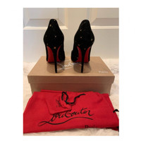 Brand new authentic in box with dust bag We are verified trusted professional seller. -The Authenticity Promise 100% AUTHENTIC, OR YOUR MONEY BACK! Shop with confidence!- We pack orders with care and video tape the whole process of packing.No cancellations after confirmations. *Please make sure the shipping address is updated before making purchase* For security reasons, shipping address cannot be changed after sale is made! Christian Louboutin Hot Chick Embellished Suede Pumps These embellished suede pumps shimmer with every step. Leather upper Point toe Slip-on style Scalloped detail Leather lining Leather sole Made in Italy Details Online since:2022-09-15 Categories: women Category: Shoes Sub-category: Heels Designer: Christian Louboutin Condition: 0 Material: Suede Colour: Black Size: 37 EU Location: empty Reference: 25311267 Measurements Heel height: 4in