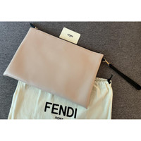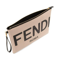 Brand new authentic FENDI logo light pink LARGE FLAT POUCH clutch wristlet Verified business seller Logo printed in black at face. Detachable leather wristlet strap with lanyard clasp fastening at side. Zip closure. Logo hardware at interior. Twill lining in black. Logo-engraved gold-tone hardware. Approx. 13.5 length x 9 height x 1 width Supplier color: Pink Calfskin. Details Online since:2024-09-04 Categories: women Category: Bags Sub-category: Clutch bags Designer: Fendi Condition: 0 Material: Leather Colour: Pink Width 13.5 in, Height 9 in Location: empty Reference: 47266662 Measurements Width: 13.5in Height: 9in