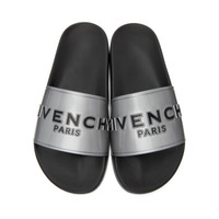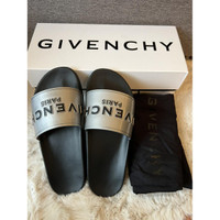 New Givenchy Silver Logo Flat rubber Sandals 40 100% authentic brand new in box with dust bag Givenchy Rubber slip-on sandals in silver-tone. Open round toe. Logo embossed in black at vamp. Molded rubber footbed in black. Tonal textured rubber midsole featuring embossed logo at outer side. Tonal treaded rubber sole.Supplier color: Silver Details Online since:2024-04-06 Categories: women Category: Shoes Sub-category: Sandals Designer: Givenchy Condition: 0 Material: Rubber Colour: Grey Size: 40 EU Location: empty Reference: 42996540