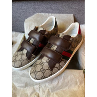 Gucci Ace Gg Supreme New Ace Web stripe Ebony beige brown Trainers Sneakers EU size 38 womens juniors Fits true to size, take your normal size Upper: leather and textiles Lining: leather Sole: other materials Details Online since:2022-10-14 Categories: women Category: Shoes Sub-category: Trainers Designer: Gucci Condition: 0 Material: Cloth Colour: Brown Size: 38 EU Location: empty Reference: 27138215