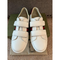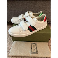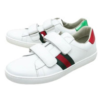 New authentic Gucci ACE LEATHER SNEAKER from Gucci junior collection Size EU 38 could fit womens US 8 Verified business seller The style is completed with a leather trim and the House Web in green and red. White leather with green and red Web Green leather detail on the back of one shoe and red leather detail on the back of the other Rubber sole Velcro strap closure Made in Italy Details Online since:2024-09-19 Categories: women Category: Shoes Sub-category: Trainers Designer: Gucci Condition: 0 Material: Leather Colour: White Size: 38 EU Location: empty Reference: 47742052