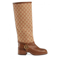 Brand new authentic in box with dust bag We are verified trusted Tradesy professional seller. -The Tradesy Authenticity Promise 100% AUTHENTIC, OR YOUR MONEY BACK! Shop with confidence! - We pack orders with care and video tape the whole process of packing. -No cancellations after confirmations. *Please make sure the shipping address is updated before making purchase* For security reasons, shipping address cannot be changed after sale is made. Gucci gg supreme logo canvas leather knee gaiter boots The leather knee boot is designed with a removable gaiter in Original GG canvas that secures with Double G hardware. Brown leather boot. Removable brick red and beige GG Original canvas gaiter with Double G. Spiked Gucci detail at the heel. 2" heel height. 15" shaft height. Details Online since:2022-09-15 Categories: women Category: Shoes Sub-category: Boots Designer: Gucci Condition: 0 Material: Cloth Colour: Brown Size: 36 EU Location: empty Reference: 25311291 Measurements Heel height: 1.5in
