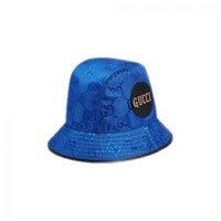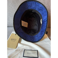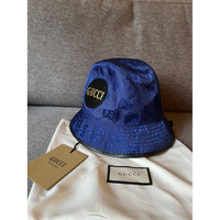 Gucci GG Off The Grid bucket blue bucket hat with Gucci logo leather patch Size L/ 59cm Brand new authentic with tags black leather brim, comes with tags and dust bag Details Online since:2023-10-22 Categories: women Category: Accessories Sub-category: Hats Designer: Gucci Condition: 0 Material: Cloth Colour: Blue Size: L International Location: empty Reference: 37809223